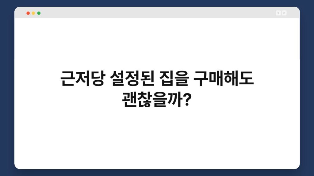 주택 구매를 고려할 때, 근저당이 설정된 집에 대한 걱정이 많으실 겁니다. 과연 이런 집을 구매해도 괜찮을까요? 근저당은 주택에 대한 담보권으로, ...