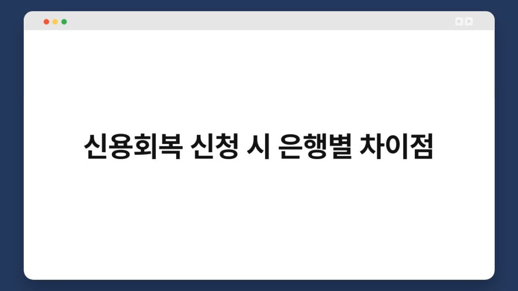신용회복 신청을 고려하고 계신가요? 하지만 은행마다 절차와 조건이 다르다는 사실, 알고 계셨나요? 어떤 은행에서 신청하느냐에 따라 결과가 달라질 수 있답니다. ...