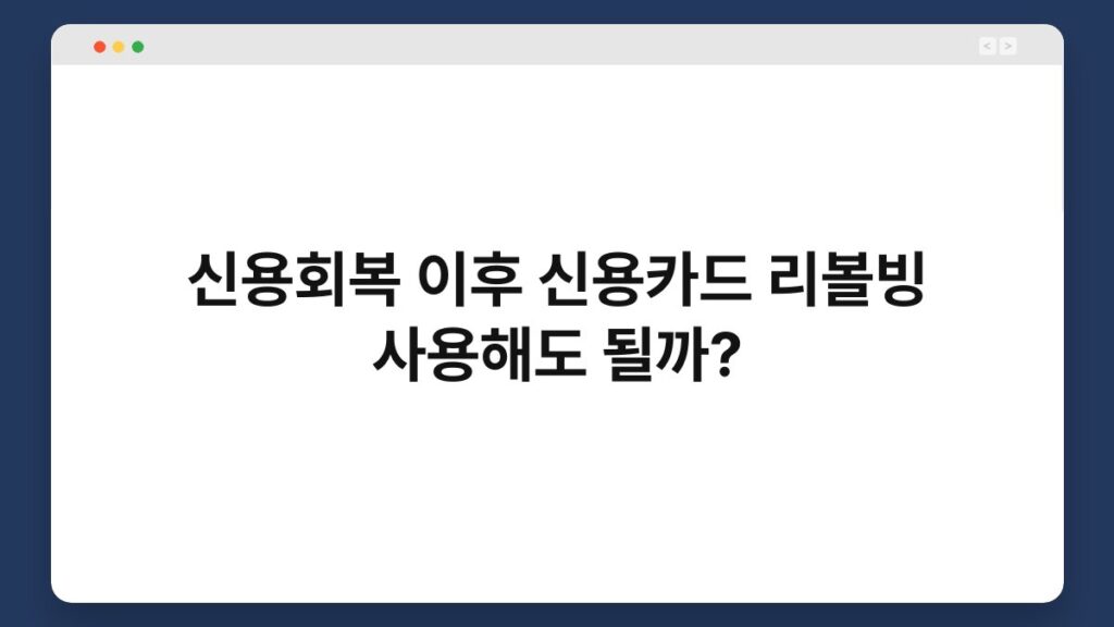 신용회복을 경험한 후, 신용카드 리볼빙 이용에 대해 고민하고 계신가요? 신용카드를 사용할 때, 특히 리볼빙 서비스에 대한 결정은 신중해야 합니다. 많은 ...