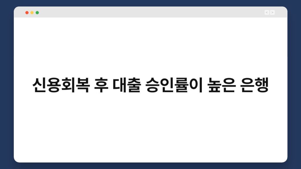 신용회복 후 대출을 고려하고 계신가요? 대출 승인이 쉽지 않은 상황에서 어떤 은행이 더 유리할지 고민이 많으실 겁니다. 신용이 회복된 후에도 ...