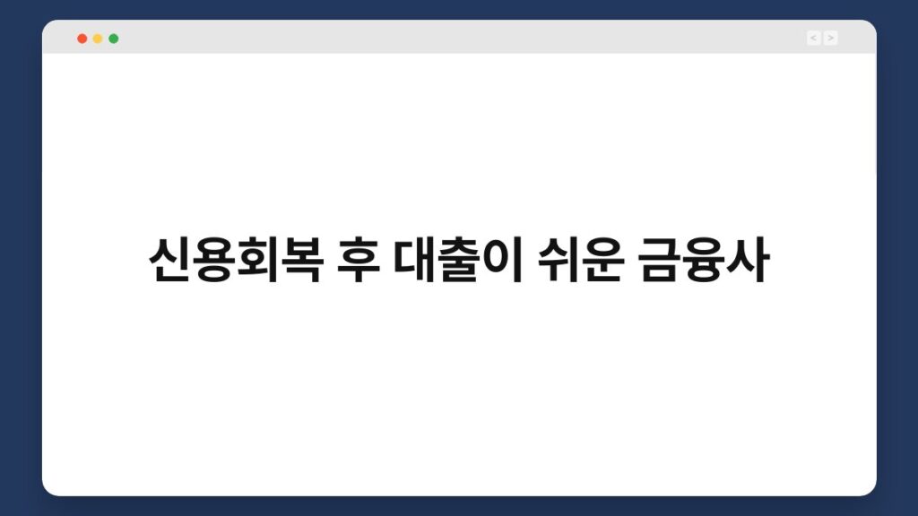 신용회복 후 대출이 쉬운 금융사에 대해 궁금하신 분들이 많습니다. 신용회복은 새로운 시작을 의미하지만, 대출을 다시 받는 것이 쉽지 않다는 것을 ...